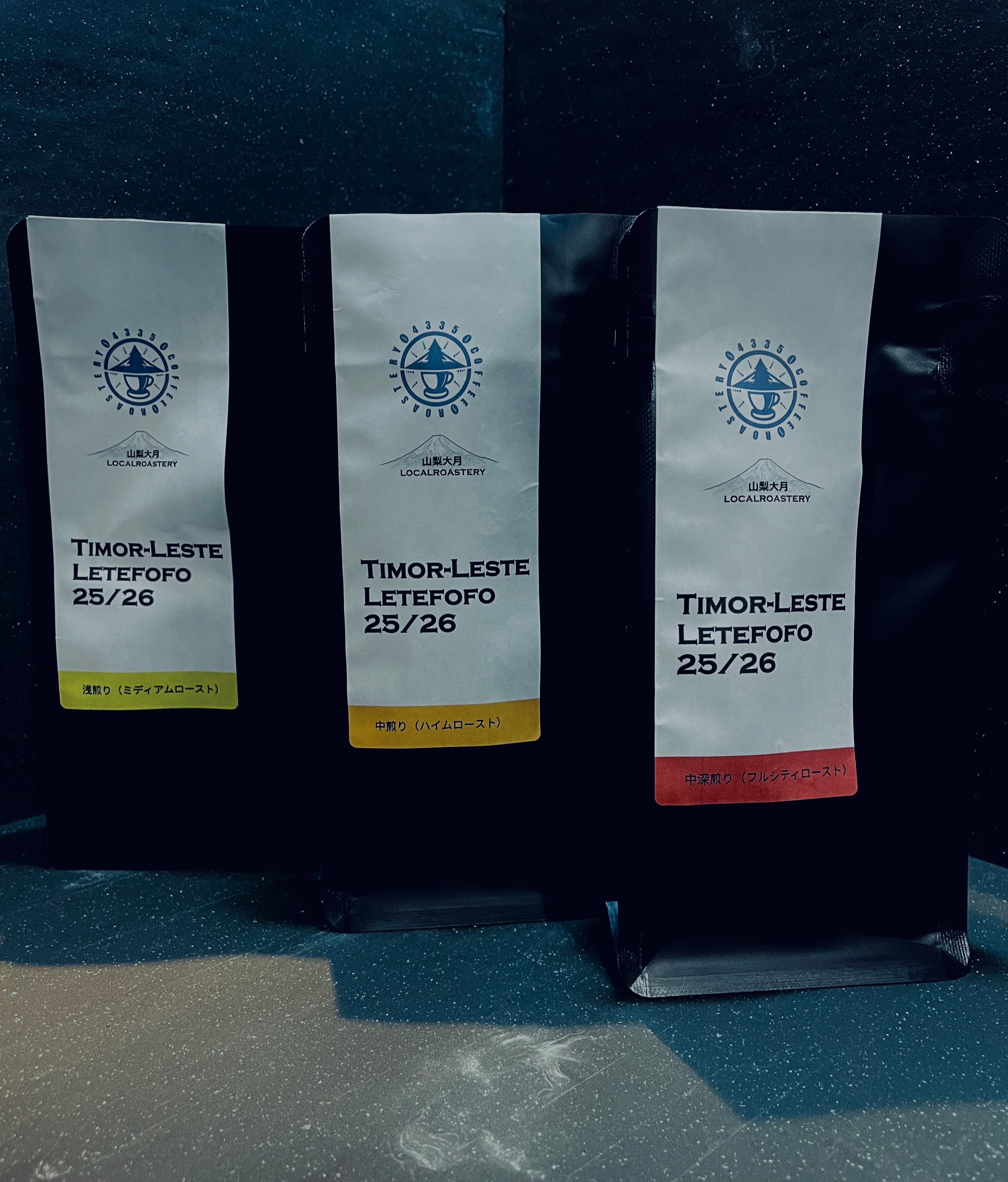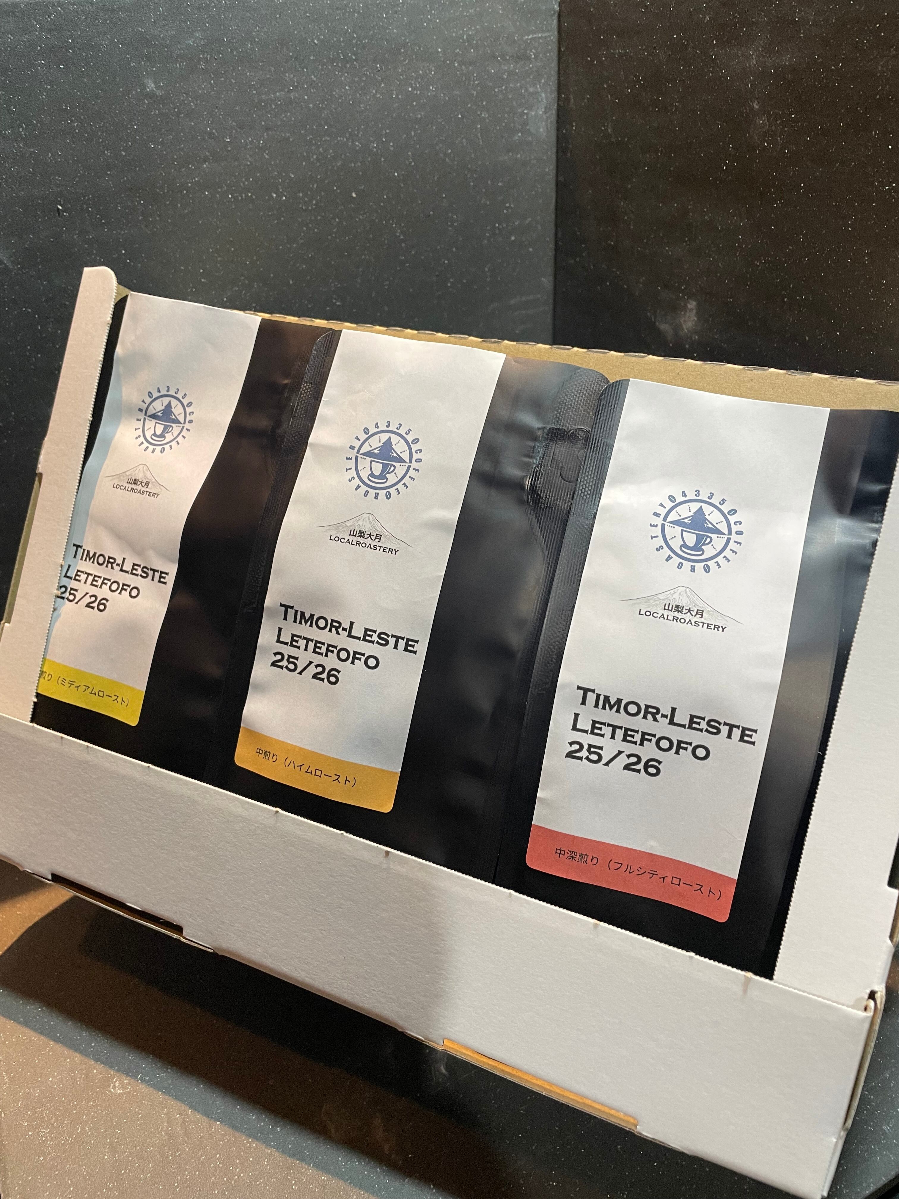 浅煎り(ミディアムロースト)中煎り(ハイロースト)中深煎り(フルシティロースト)の三種類を80gづつクリックポストにてお送りいたします。